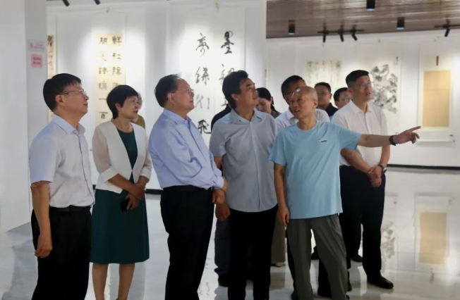 9月2日,“铭记历史共创未来——纪念抗日战争胜利80周年”书画展,在河南省漯河市中州红色记忆美术馆展出。漯河市政协党组书记、主席王克俊,漯河市政协党组副书记、副主席、市政协书画院院长赵改焕,漯河市政协副主席罗伟民、史有来及秘书长舒畅等在漯河市书协主席刘颖峰、漯河市美协主席王博陪同下参观展览。