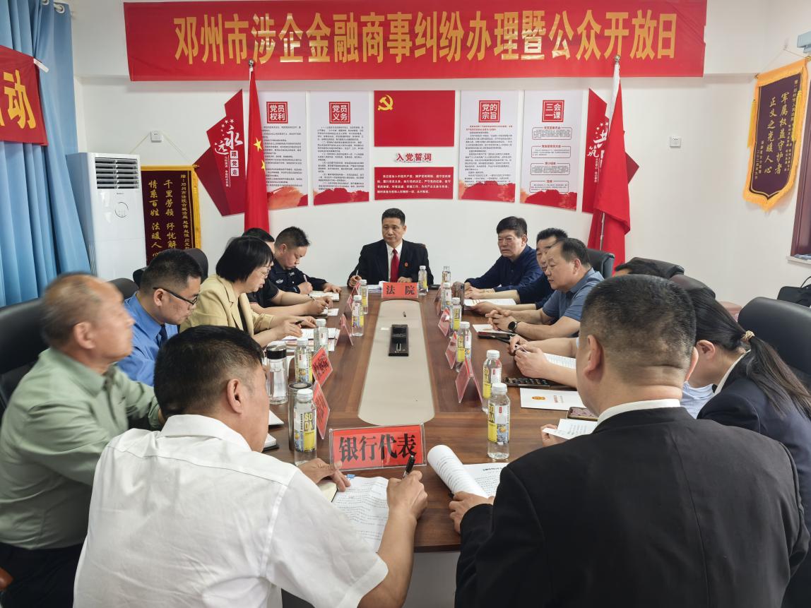 为进一步优化法治化营商环境,促进民营经济健康发展和民营经济人士健康成长,4月16日,河南省邓州市委政法委、市工商联联合法院、检察院、公安局、司法局、银行以及企业家代表开展“工商联+政法机关”涉企金融商事纠纷调解处理暨公众“开放日”活动,相关单位负责人以及企业家代表共30余人参加本次活动。