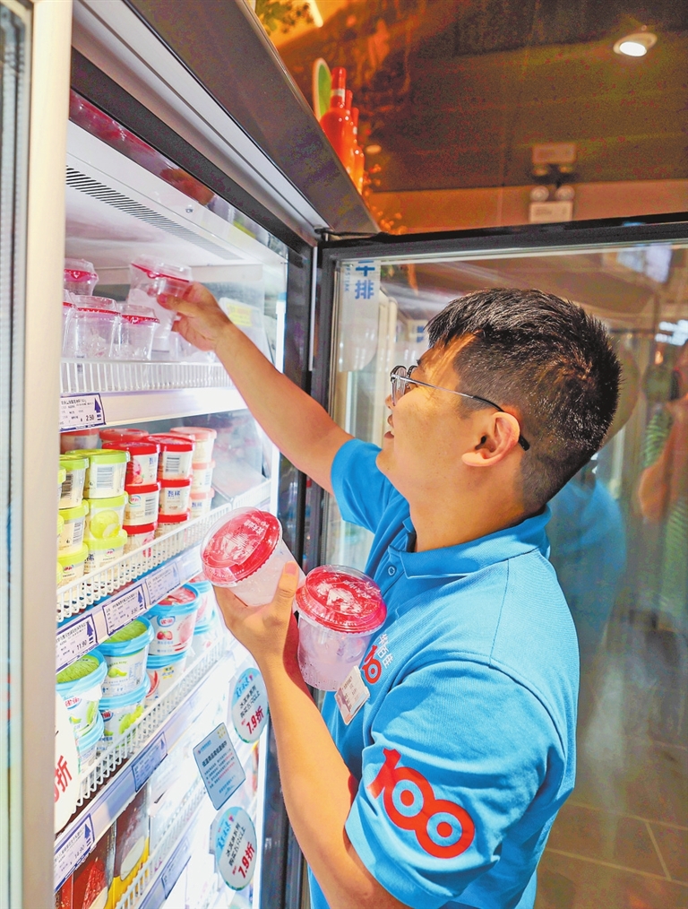 8月6日,郑州市某超市员工正在给冰杯补货。记者 邓放 摄
