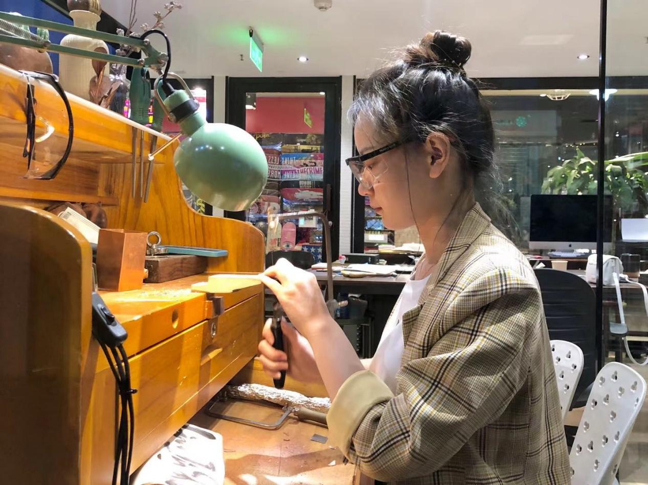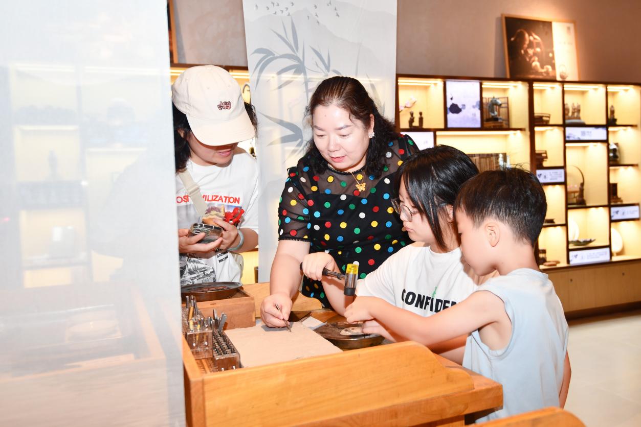 非遗共创体验:访客可在匠人指导下,将纹样錾刻于纯银坯料之上,亲手打造「承载情感的非遗信物」。不同于流水线制品,这里的每一件手作银饰都带着锤击的温度与文化的重量。