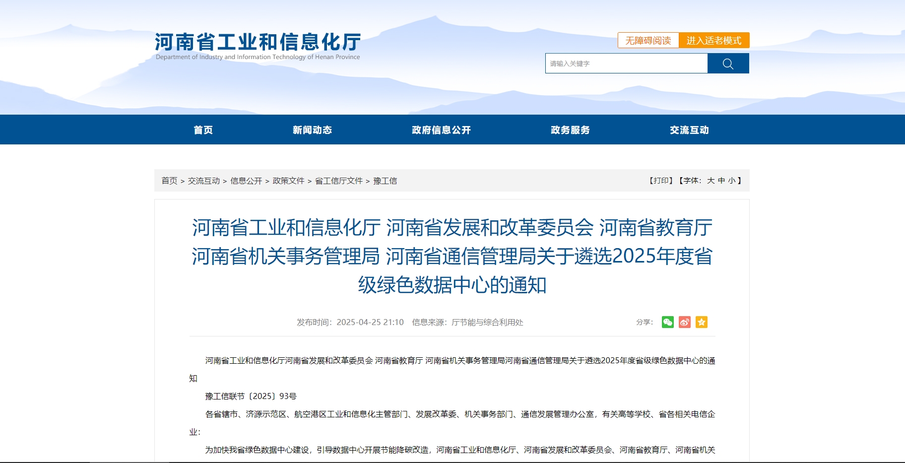 4月25日,据河南省工业和信息化厅消息,为加快河南省绿色数据中心建设,引导数据中心开展节能降碳改造,河南省工业和信息化厅、河南省发展和改革委员会、河南省教育厅、河南省机关事务管理局、河南省通信管理局决定联合组织开展2025年度河南省绿色数据中心遴选推荐工作。