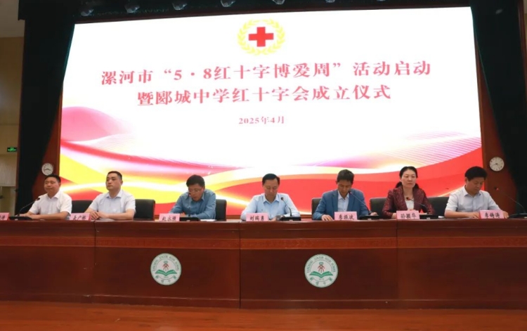 省红十字会党组成员、副会长刘瑞勇与市教育局党组成员、副局长聂广桥共同为郾城中学红十字会揭牌,开启校园红十字工作的新篇章。省红十字会办公室负责人李振波现场发布漯河市红十字会公益项目,涵盖人道救助、应急救护公益培训等领域。