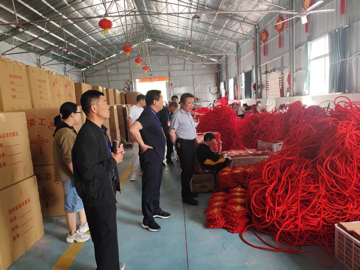 在王良村中国结厂,委员和代表们跟随企业负责人走入生产车间观摩产品生产过程,并向企业负责人了解企业产业规划、技术管理、产能销量等情况。各位代表纷纷发言,对中国结厂在自主研发创新、新品种推广方面作出的努力表示肯定,同时,也对该厂下一步的发展提出合理化建议。