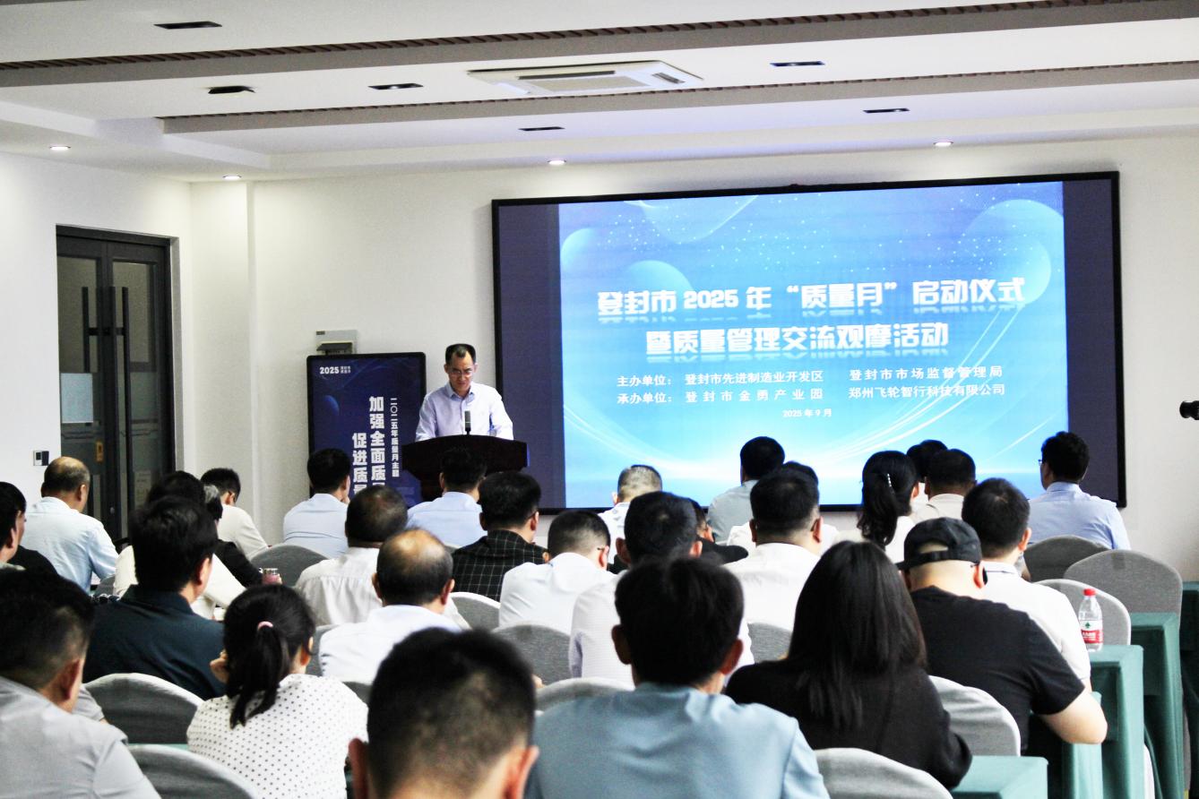2025年9月5日,登封市市场监督管理局联合登封市先进制造业开发区在登封市金勇产业园举行了登封市2025年“质量月”启动仪式暨质量管理交流观摩活动。登封市政府党组成员、副市长刘文石,郑州市市场监督管理局党组成员、一级高级主办朱忠锋,登封市先进制造业开发区党工委书记、管委会主任韩迎旭,登封市市场监督管理局党组书记、局长米红涛,郑州德力自动化物流设备有限公司副总经理杨治国出席活动。会议由登封市政府办公室副主任闫科晓主持。