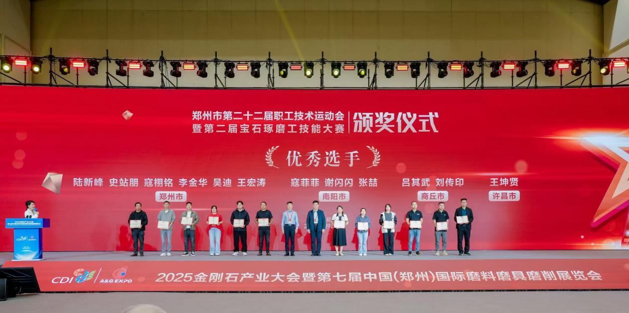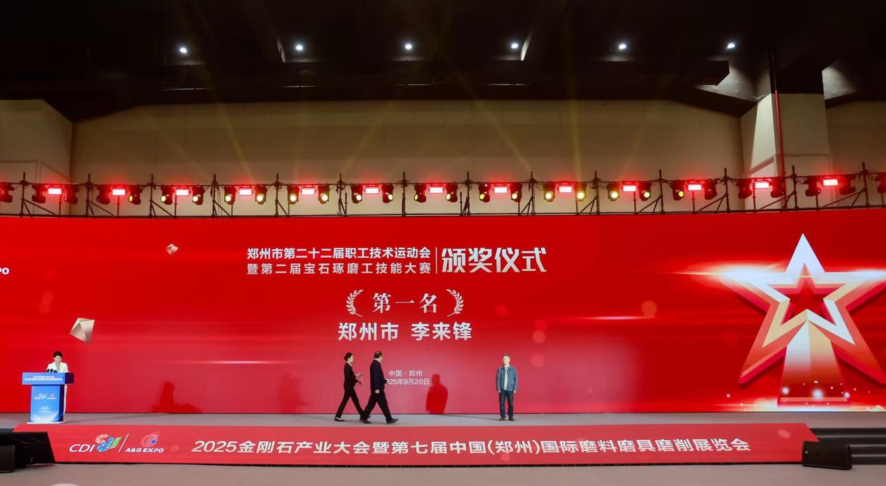 大会同期举办了郑州市第二十二届职工技术运动会暨第二届宝石琢磨工技能大赛颁奖仪式。来自郑州的选手李来峰凭借"极致专注与精湛技艺"获得行业最高认可。