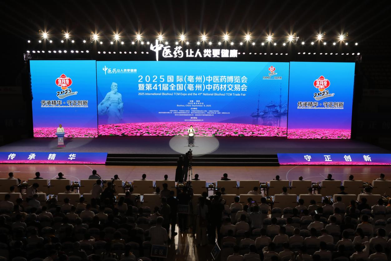 9月9日,2025国际(亳州)中医药博览会(以下简称“药博会”)暨第41届全国(亳州)中药材交易会(以下简称“药交会”)开幕式在亳州市体育馆举行