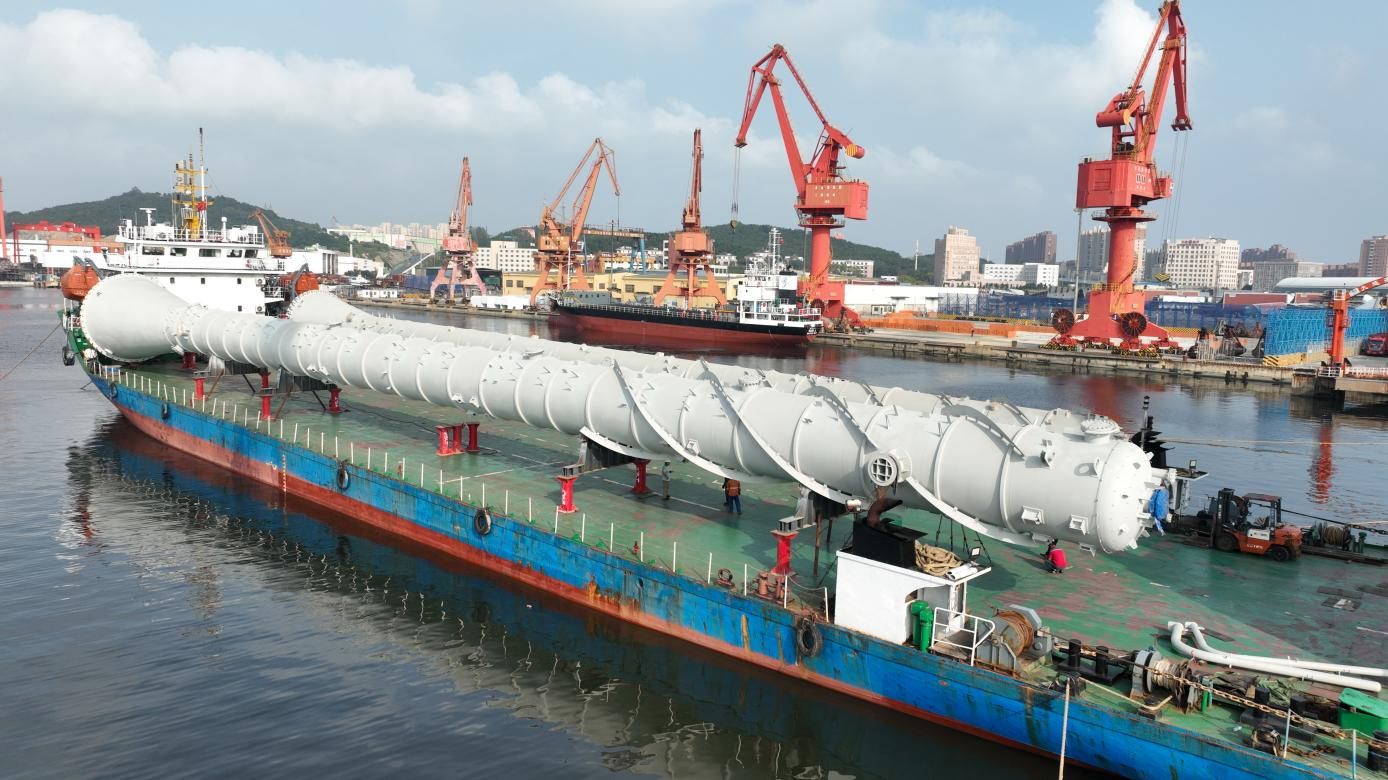 大连重工装备集团研制国内首套40万吨/年LAO装置核心塔器上船发运