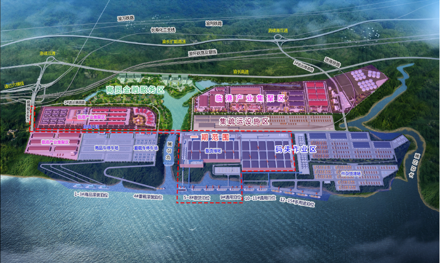 该项目位于渝北区洛碛镇,计划新建4个5000吨级散货泊位和1个通用泊位,设计年通过能力1655万吨,对推动重庆港口智能化转型具有重要意义