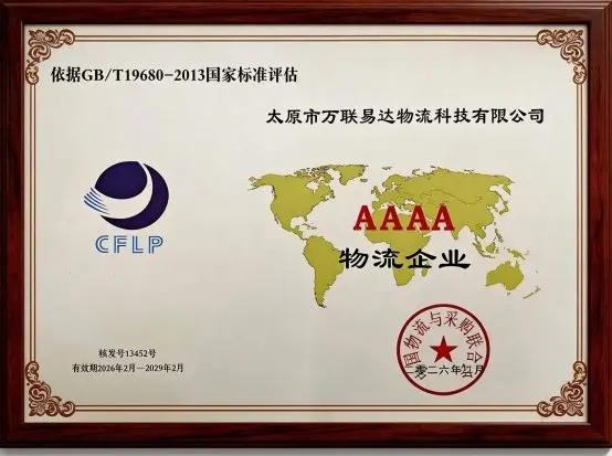 太原市万联易达物流科技有限公司荣获4A级物流企业殊荣
