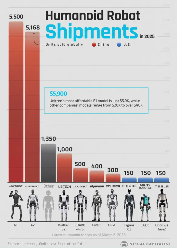 宇树科技人形机器人全球出货量第一,中国企业表现突出