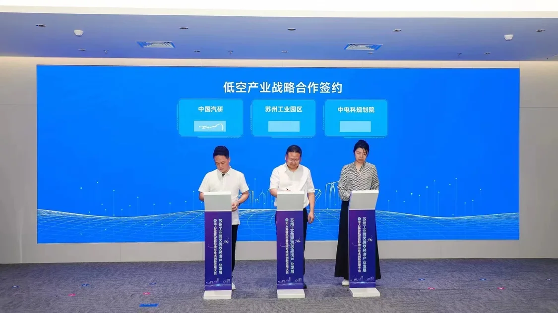 现场进行了多轮合作签约。园区投资促进委、中电科规划院、中国汽研签署低空产业战略合作协议。园区低空公司、电标院华东分院、南航民航学院、上海通航协会、苏试试验、中信咨询资源能源研究院共同签署低空航空器适航研究基地的合作协议。新建元数科、中航空管、苏州空天院、华为就数字化空天地融合管理系统达成合作签约。园丰资本、元禾控股、领军创投、翼朴资本、乾融控股、元航资本、轻舟资本、太浩资本携手成立低空经济产业基金联盟。园区低空公司携手苏州港航集团、中检华通威、智创航空、镓和半导体,园丰资本携手寰宇航天、梅特科、致航科技签约低空经济产业合作项目。高贸区携手伟中智能、吴中高科、西安因诺,园区科招中心携手爱笛无人机、汉发长空,纳米公司携手博科电测签约低空经济产业合作项目。园区低空公司携手山河通航、德智航创、起飞航空、翰动无人机、鲸鹿动航,新建元数科携手深城交、迅蚁天图签约低空经济产业合作项目。未来各方将携手开展深度合作,共同推动产业蓬勃发展。