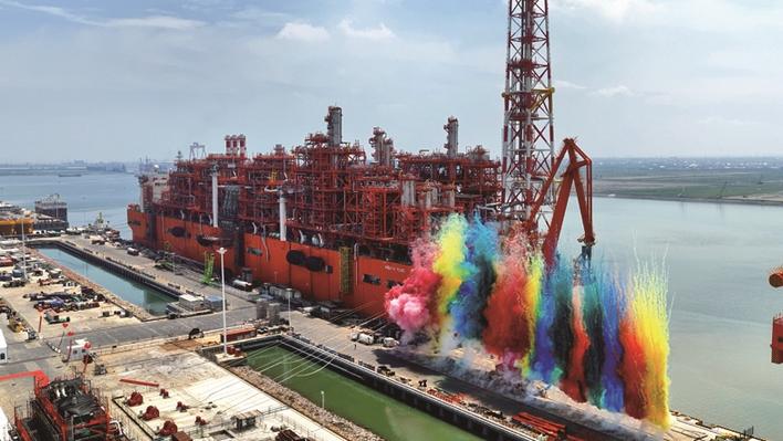 今年8月26日,由惠生清洁能源总包的我国自主研发建造的最大吨位、最大储气量的新型海上浮式液化天然气装置——NGUYAFLNG,在南通正式启航。从合同签署到装置起航仅用33个月,该项目为国际海洋能源项目执行树立了新标杆。作为开发海洋天然气资源的“利器”,FLNG被誉为船舶海工行业“皇冠上的新明珠”。惠生清洁能源是目前我国唯一具备FLNG总包承建能力和拥有交付记录的企业,自2004年落户南通以来,顺应优江拓海、向海发展趋势,先后在沿江、沿海布局两个大型海工建造基地。
