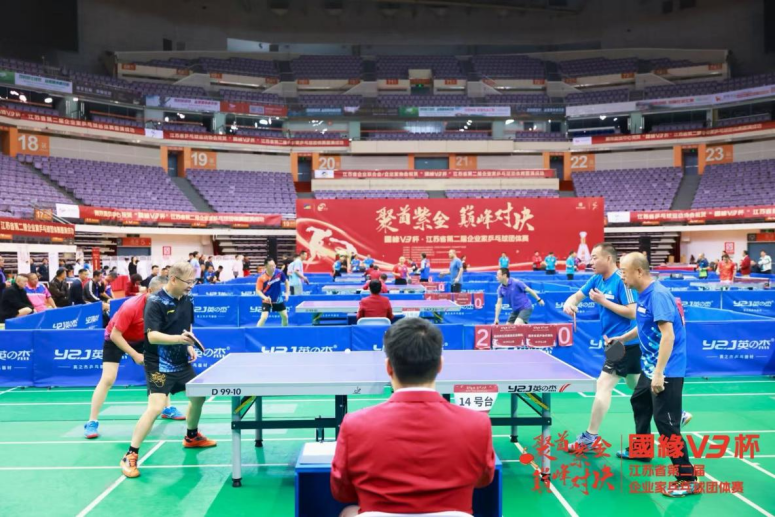 以球会友,聚力发展。由江苏省企业联合会、江苏省企业家协会、江苏省乒乓球运动协会、江苏省体育产业集团共同主办的“国缘V3杯·江苏省第二届企业家乒乓球团体赛”,于2025年10月25日至26日在南京奥体中心体育馆隆重举行。本届赛事在延续首届成功经验的基础上,进一步扩大规模、优化赛制,吸引江苏省13个城市及驻苏省部属企业的34支代表队,运动员、教练员等300余名企业家参赛,赛事规模、参与广度均创历届新高,成为推动江苏企业家交流、赋能实体经济的重要平台。