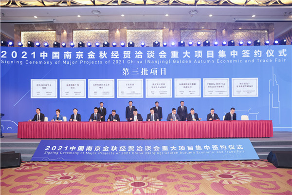 10月13日,2021中国南京金秋经贸洽谈会重大项目集中签约仪式在南京国际博览会议中心举行。