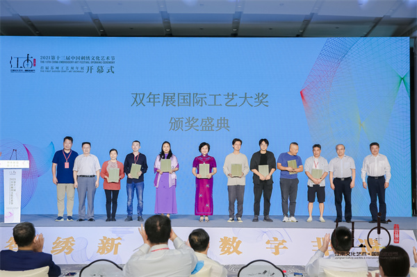 9月23日,2021第十三届中国刺绣文化艺术节开幕式在苏州高新区举办,本次艺术节的主题是“绣起新篇、数字非遗”。邀请了国内和11个国家近300件工艺艺术品双年参展,范围涵盖了刺绣、编织、雕刻印、构造以及生活美学空间;艺术形式有架上刺绣、多材料纤维编织艺术、金属雕塑、木刻版画、纸雕艺术、机械艺术、装置艺术、漆器构造、印染和日常风雅之物。