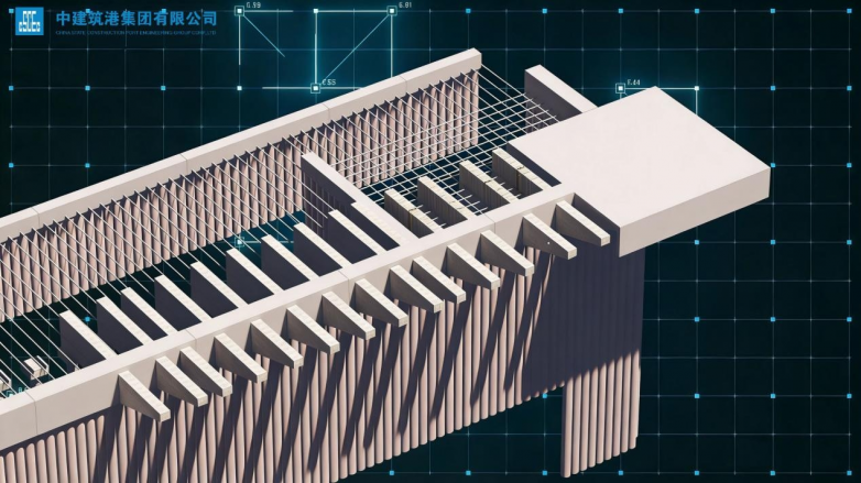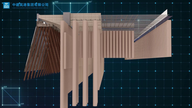为提升管理效能,项目全面引入智慧建造技术,布局多项智能应用系统,提升人员管控的效率与精度。BIM可视化技术的深度应用成为项目亮点。团队将其贯穿于工程量计算、项目展示、场地布置、构件优化及可视化交底等全流程,高效完成二号码头主体结构施工,并制作基础施工、上部结构施工动画及项目整体视频,节省工期近25天。