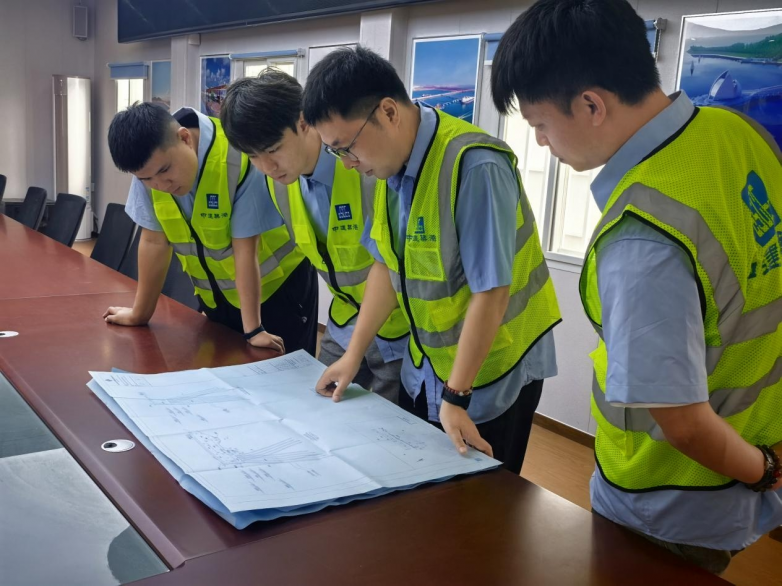 “质量是工程的生命,安全是生产的底线。”这是宋述昌常挂在嘴边的话,更与中建筑港深植于心的管理理念高度契合。他的办公桌上,图纸堆叠如山,每一页都标注着细致的技术要点;电脑里,存满施工模拟动画与技术交底视频。他坚持技术交底必须直观透彻,确保每位一线工人都能精准理解、严格执行,这背后正是企业对施工规范与过程管控的极致追求。