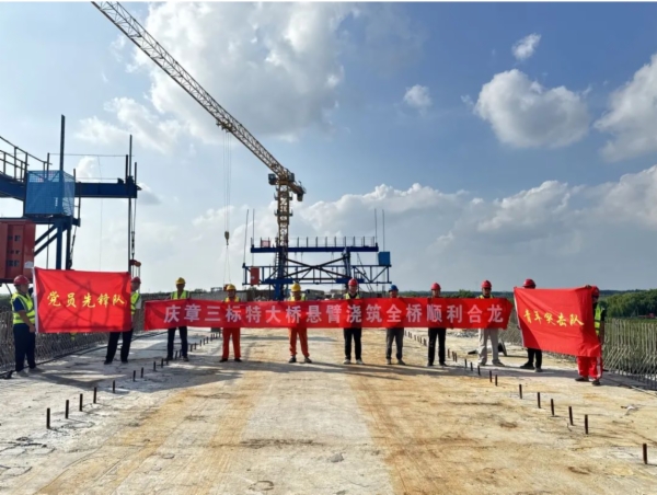 山东高速投资建设的庆章项目小清河特大桥中跨悬浇梁顺利合龙