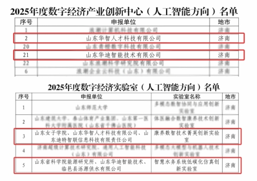 近日,《2025年度山东省数字经济创新平台名单》公布,山东科创旗下华智人才与华迪智能分别入选“2025年度数字经济产业创新中心(人工智能方向)”与“2025年度数字经济实验室(人工智能方向)”名单