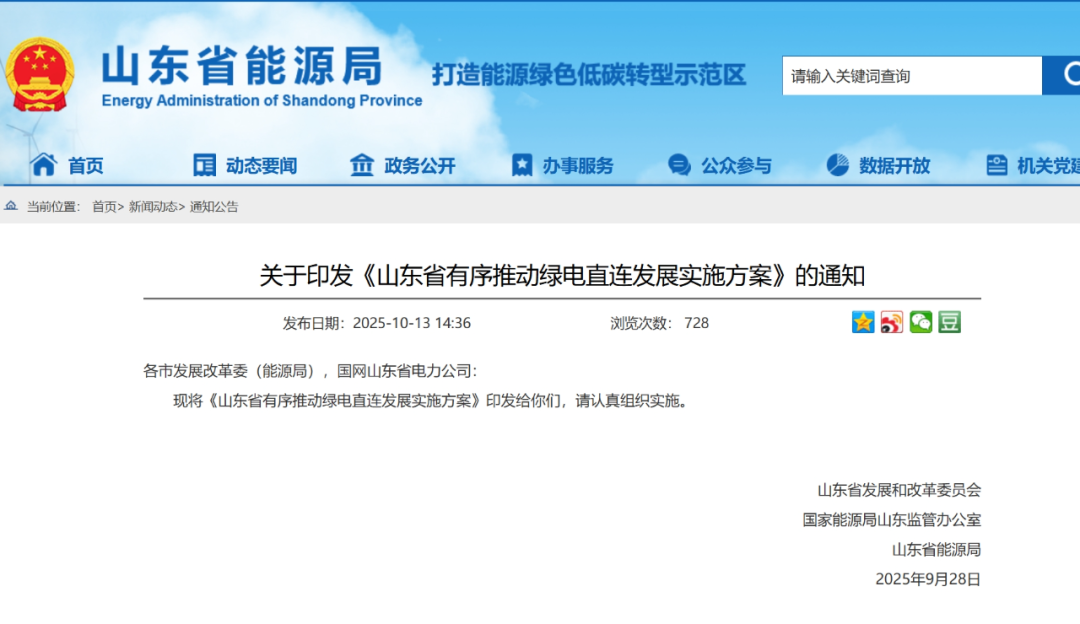 更好满足企业绿电用能需求,山东出台绿电直连发展实施方案
