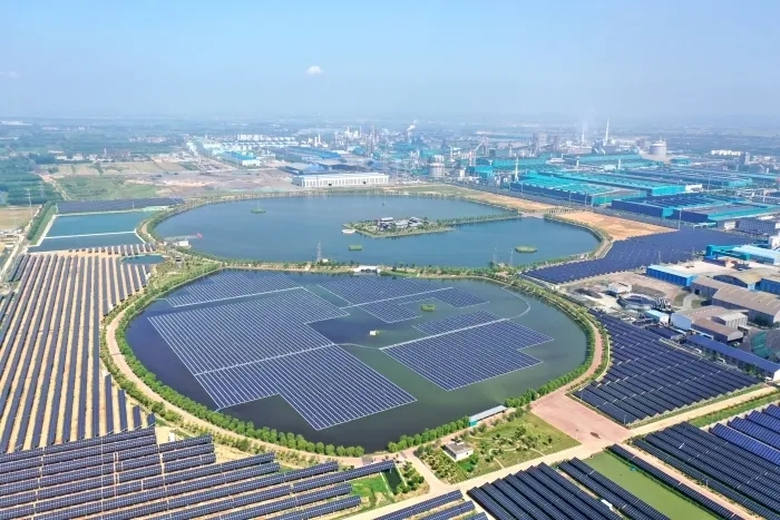 ▲晋南钢铁建设的万亩太子湖光伏项目是山西目前最大水上光伏项目。