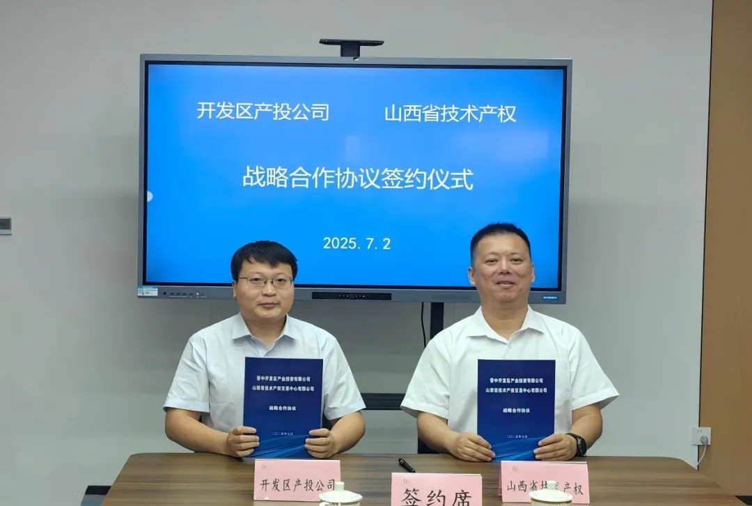 7月2日,晋中开发区产业投资有限公司与山西省技术产权交易中心有限公司举行全面战略合作协议签约仪式。双方将共同促进晋中开发区中小科技型企业健康发展,提升中小企业市场竞争力。