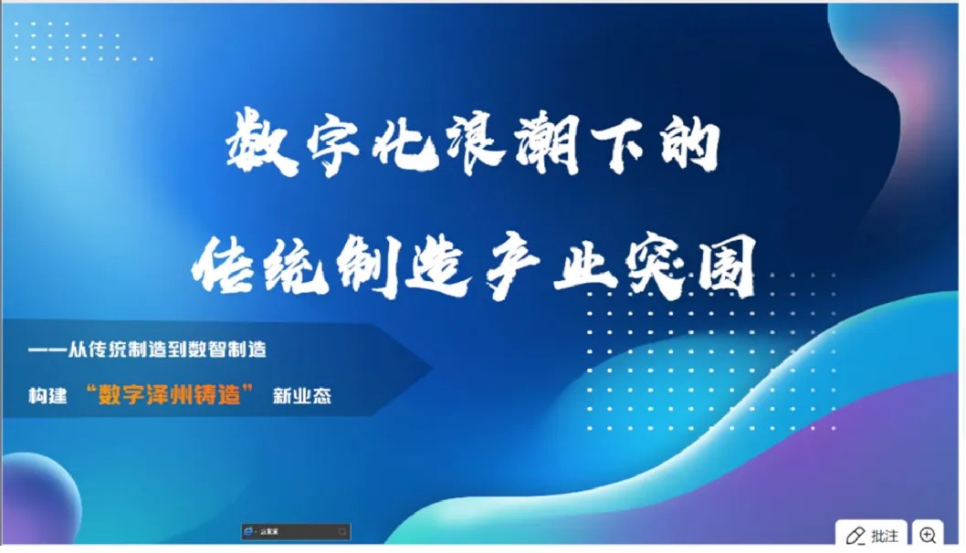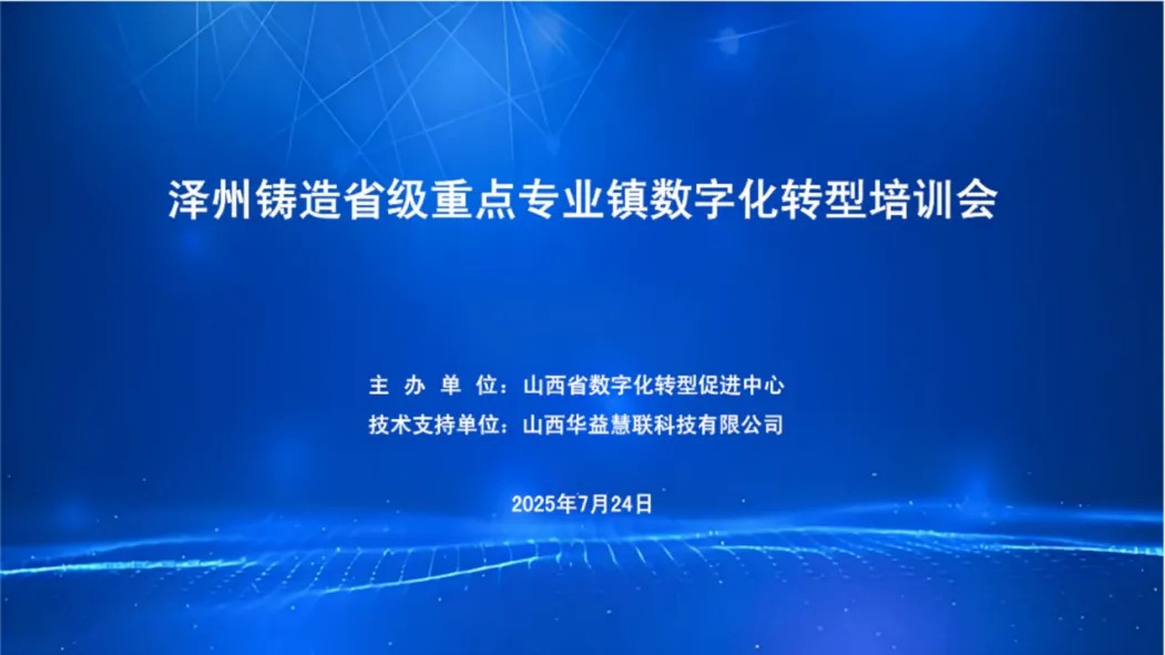 近日,由山西省数字化转型促进中心主办的泽州铸造省级重点专业镇数字化转型培训以线上直播的形式成功举办。山西华益慧联科技有限公司执行董事兼总经理李晓彬,京海国际控股集团副总裁、九合信通科技(山西)有限公司董事长耿焕苹,金蝶软件(中国)有限公司山西省公司首席智能制造顾问荆娟等三位专家聚焦传统铸造行业数字化升级痛点授课,近200名企业管理人员及技术骨干参会。