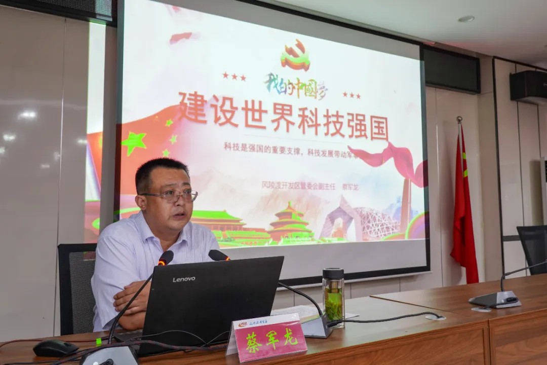 8月11日,山西省风陵渡经济开发区以“建设世界科技强国”为主题,举办“风陵大讲堂”专题讲座活动。开发区党工委委员、管委会副主任蔡军龙授课。开发区各内设机构及条管单位全体人员等100余人聆听讲座。