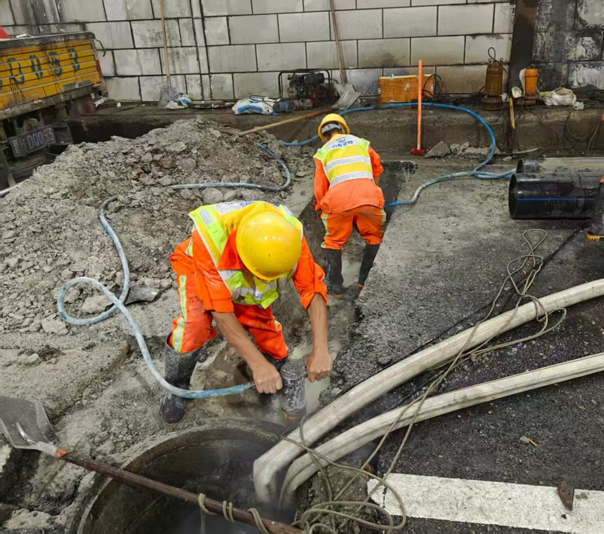 聚焦汛期安全防范,筑牢排水安全屏障。建立“监测—分析—处置”防控机制,利用夜间低峰时段开展针对性应急处置,通过大功率抽水泵降低水患点位水位,采用横向开槽埋管工艺实现积水引流,并启用高压疏通车清理排水管网淤积物,有效提升了隧道防汛抗灾能力。(吕峰 周雪燕)