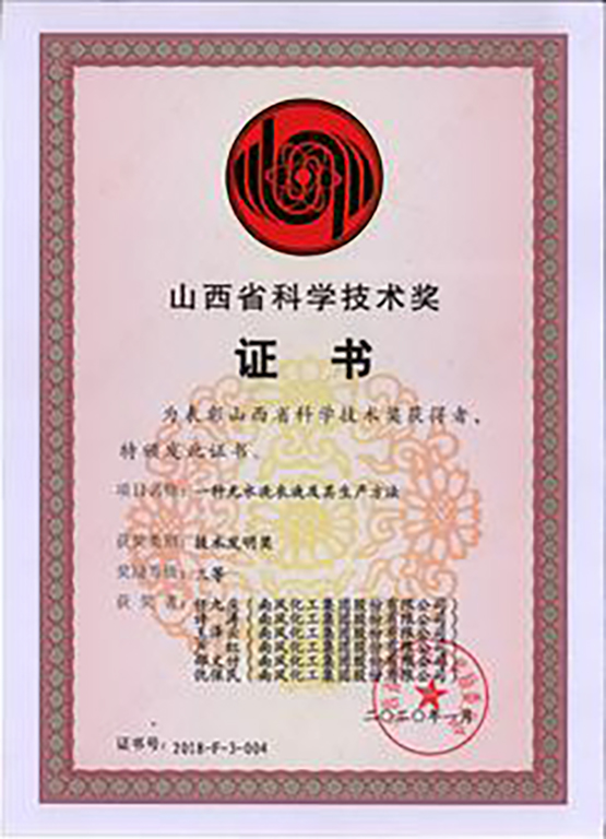 ▲南风化工无水洗衣液项目获山西省技术发明三等奖