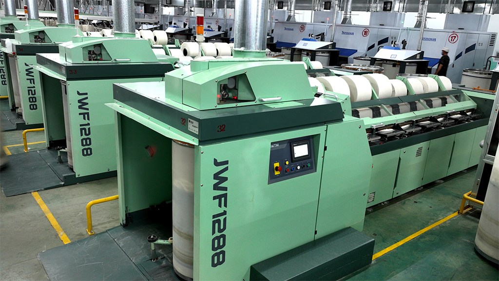 精梳机技术方面:JWF1288型全自动精梳机采用PLC控制,突破大角度锡林变速梳理技术,优化自动接头、自动换卷、自动退管技术,在全机运行、故障提示、安全监控、设备状态等方面深度优化,运转速度最高可达550钳次/分,自动接头成功率提升至93%以上,适纺纤维长度25mm~51mm,产量可达65kg/h,实现了全自动高速精梳机的国产化,填补了国产精梳机无人值守智能化生产的空白。2024年9月顺利通过科技成果鉴定,整体技术达到国际先进水平。