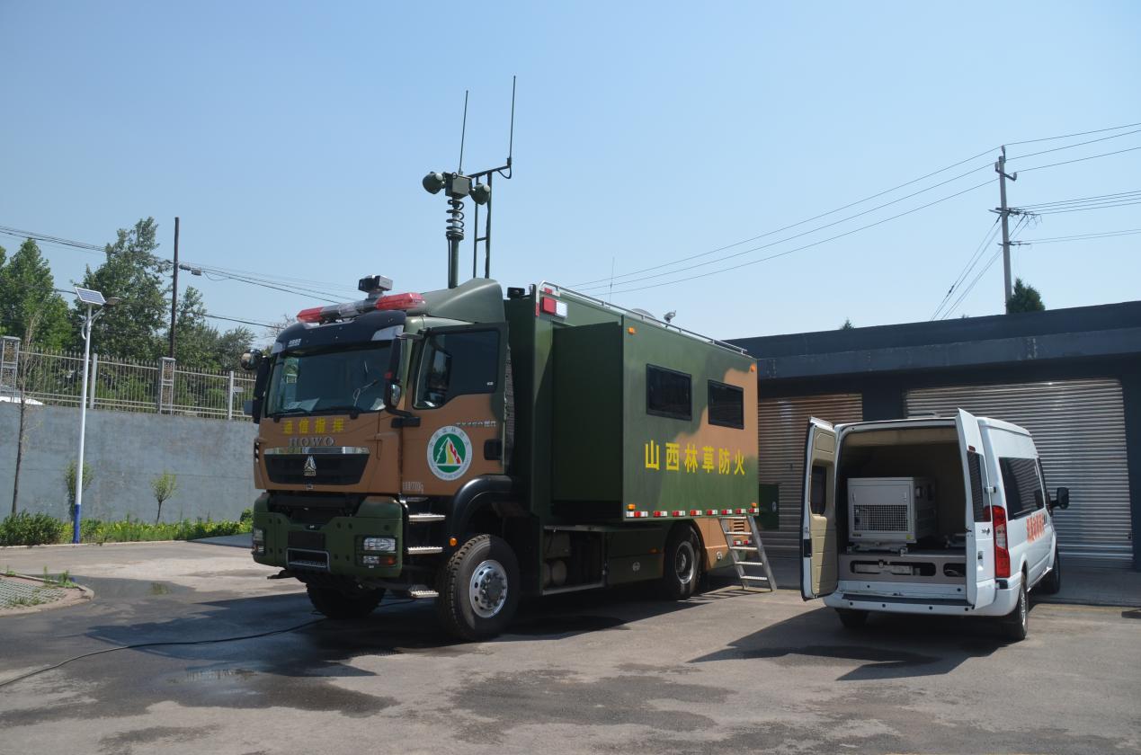 智能化调度助力应急指挥。防火指挥系统集通信、调度、指挥于一体。无论哪个系统监测到火情,指挥中心预警系统都会自动报警并准确定位,智能防火系统会根据实时的天气情况,预判火情蔓延的大小,再根据火势的大小合理分析生成所需扑救人员和物资的数量。除了智能调度外,还建有山西省林草系统首辆方舱通讯指挥车,该指挥车具备了二维三维地图建模、实时图像采集处理、自组网音视频传输、无人机综合指挥调度、卫星实时通信等技术优势,为火灾扑救、抢险救援等现场指挥决策提供了坚强有力的通信保障。