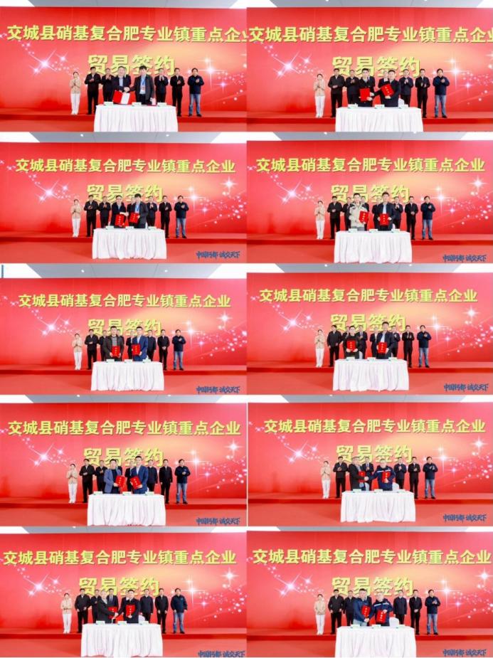 在与会领导的共同见证下,交城三喜化工有限公司、山西华鑫肥业股份有限公司、山西金兰化工股份有限公司、交城县德谦肥业有限公司、山西磊鑫化工股份有限公司五家硝基肥骨干企业分别与合作伙伴进行贸易签约。一系列合作的落地,将进一步激活产业创新动能、拓宽市场空间。
