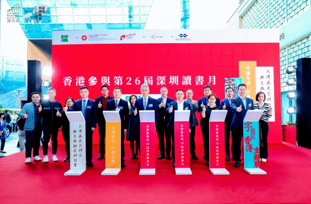 开幕礼现场,由香港出版总会主办,深圳读书月组委会支持、香港出版总会文创产业发展处资助的“字游香港漫步城市”主题展览暨书展同步正式启动