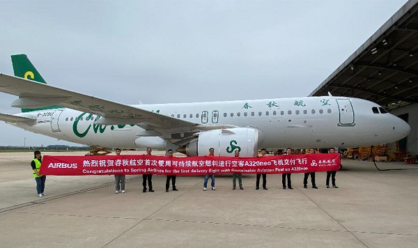 春秋航空首迎使用可持续航空燃料的空客A320neo飞机