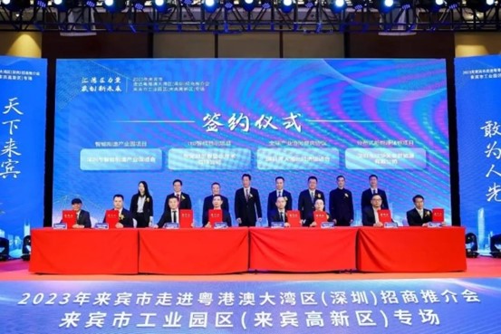 一年之计在于春,扬帆奋进正当时。近日,2023年“汇湾区力量,赢创新未来”广西来宾市工业园区(来宾高新区)走进粤港澳大湾区(深圳)招商推介会成功举行,现场签订7个项目合作意向协议书,计划投资总额16亿元。