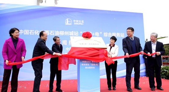 2月14日,中国石化首座“易捷+电”一站式规模化综合服务站在中国石化广西石油柳州城站站正式揭牌。