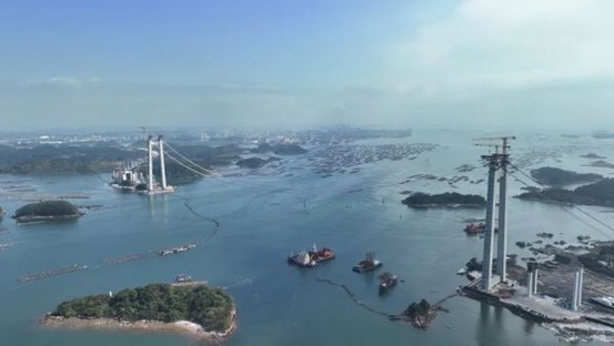 广西最长跨海大桥——龙门大桥猫道架设完成