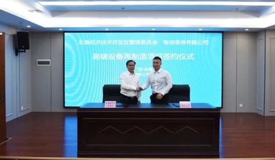 2月14日上午,国家级北海经济技术开发区在广西北海市举行“高端设备再制造项目”签约仪式,北海工业园区管理委员会主任刘忠广与智创香港有限公司负责人何伟进行项目合同签约。
