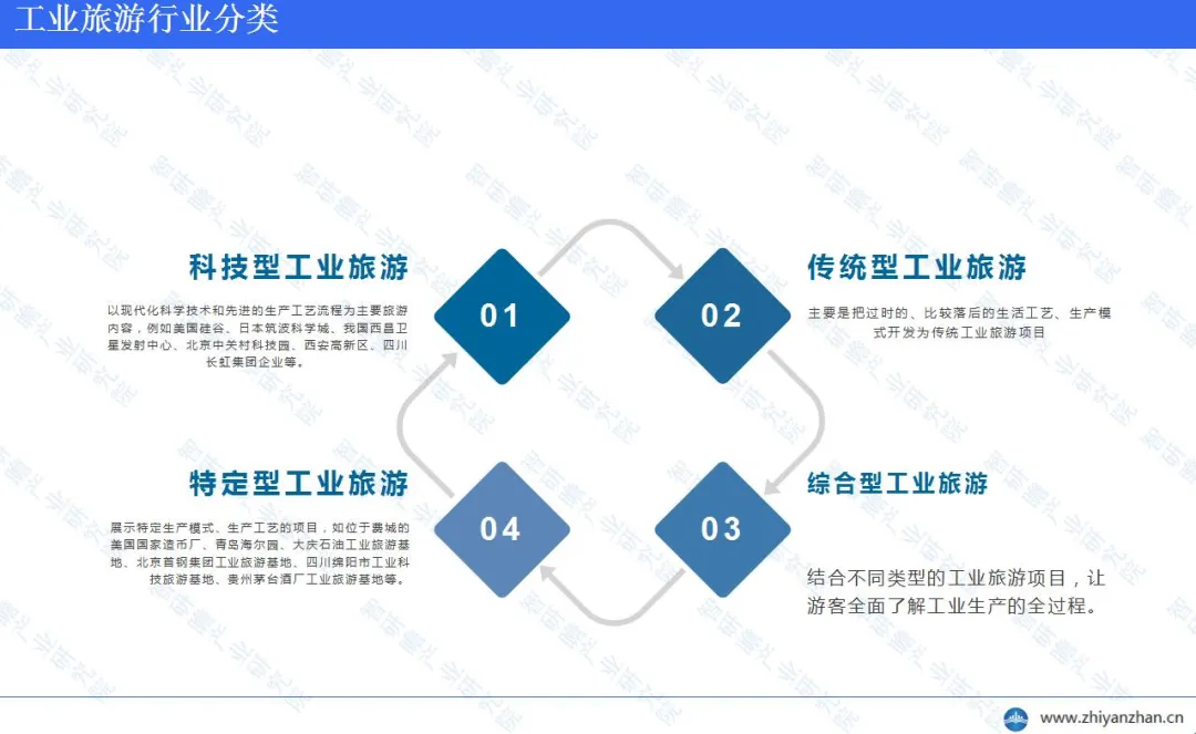 工业旅游行业定义工业旅游是一种特殊类型的旅游活动,其焦点在于保护和发掘工业遗产的价值,同时还展现出现代化工业的生产和运营景象,为游客提供亲身参与工业生产的机会。从工业旅游的概念本质来解读,它涵盖了两个主要部分:一部分是围绕工业遗产的旅游活动,另一部分是工厂观光旅游。工业旅游行业分类工业旅游大致可分为四种类型。第一种是科技型工业旅游,主要以现代科技和先进生产工艺流程为旅游内容,例如参观美国硅谷、日本筑波科学城等科技园区,以及我国西昌卫星发射中心、北京中关村科技园等高科技产业区。第二种是传统型工业旅游,主要将过时的、落后的生产模式和生活工艺开发为旅游项目,例如参观老旧的矿井、矿坑、蒸汽机制造厂和火车厂等,德国埃森煤铁工业城就是典型例子。第三种是特定型工业旅游,它展示特定的生产模式和工艺,如参观位于费城的美国国家造币厂、青岛海尔园等,以及我国的大庆石油工业旅游基地、四川绵阳市工业科技旅游基地等。最后一种是综合型工业旅游,它融合了各种工业旅游项目,使游客能够全面了解工业生产的全过程。除此之外,那些能够被开发利用以吸引游客的工业场地、生产流程、产出成果以及管理经验,尤其是那些具有独特性的企业、高科技企业、拥有创新产品和管理经验先进的企业,都具备成为工业旅游资源的潜力。