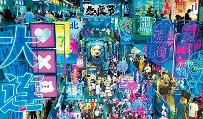 一个优质的新文旅产品,足以改变一座城市在市民、游客心中的认知。三年前,人们很难想象一个叫“熊洞街”的地方能成为大连的创新型地标。一万平方米的熊洞街,去年接待游客140万人次。熊洞街利用高科技打造机械巨熊,结合时下流行的国潮、赛博朋克等元素,链接商业与主题游乐,集巨兽巡游表演、美食娱乐、潮流艺术、科技研学、潮玩周边和夜经济于一体,成为年轻人的欢乐街。