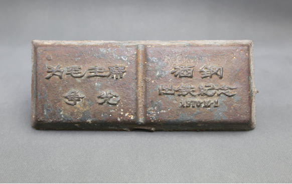 1958年,酒泉钢铁公司伴随着国家“一五”计划开始建设,经历了12年艰苦奋斗后,终于迎来曙光。为确保顺利生产,全国300多家单位千里迢迢支援酒钢出铁大会战,夜以继日、艰苦奋斗,生产出第一批铁锭,作为酒钢公司庆祝新中国成立21周年的国庆献礼。此铁锭通体黝黑,重达5.5千克,正面铸有“为毛主席争光酒钢出铁纪念1970.10.1”字样,现收藏于嘉峪关城市博物馆,2022年被鉴定为一级革命文物。它是我国冶金工业发展的缩影,也是嘉峪关城市发展历程的见证。