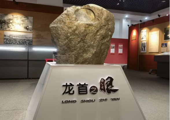 20世纪60年代初,在甘肃河西走廊龙首山下,发现了特大硫化铜镍矿床,建设大军从四面八方涌入金川,拉开了共和国镍钴工业基地建设的序幕。此矿石标本采掘于金川集团公司二矿区1000米井下,高85厘米,重880公斤,镍金属含量7-9%,其伴生元素还包括铜、钴、铂等多种有色金属,属于龙首山镍矿床精品中的精品,被命名为“龙首之眼”。它见证着一座新兴的工业城市——镍都金昌的崛起,也记录了一代代建设者艰苦创业、开拓进取的身影。