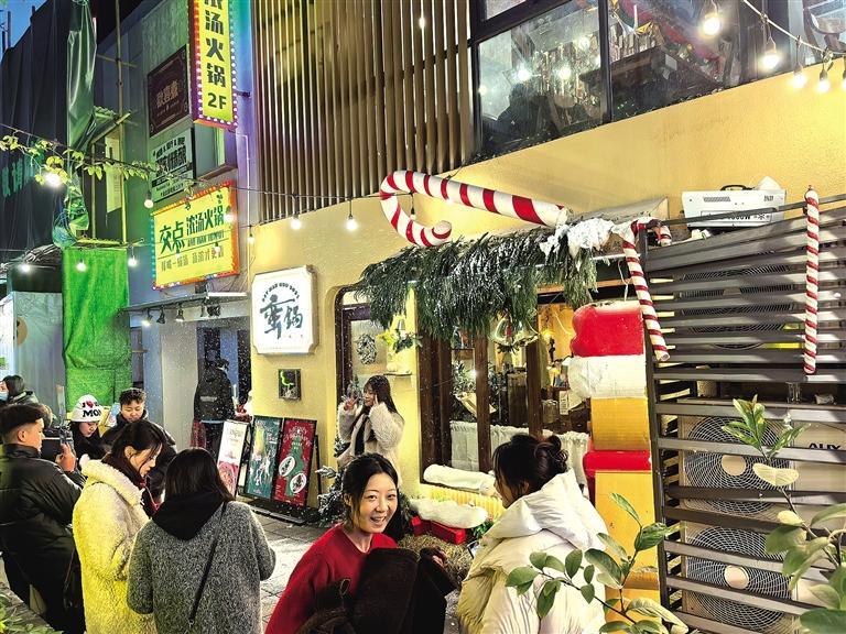 2024年12月27日,人们在装扮一新的老菜场拍照打卡热闹繁华的西安际华3511文创科技园(2024年12月26日摄)三秦大地工业成果璀璨、历史遗存丰厚