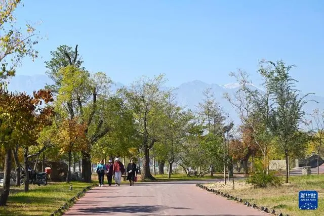 10月23日,游客在位于宁夏银川市的贺兰山运动休闲公园散步。
