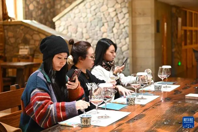 10月23日,游客在位于宁夏银川市的志辉源石酒庄品酒。