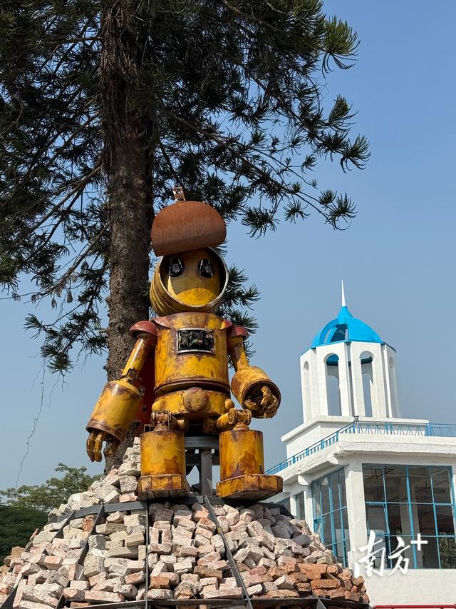 在南头镇沿江东路一号,走过30多年的中山市广利罐头厂(下称“广利罐头厂”)迎来新生。斑驳的光影在废旧工业构件间跳跃,与艺术装置交织成一幅幅令人目不暇接的画面,废旧工业材料被匠心独运地转化为独特的景观艺术,锈迹斑斑的废旧金属被锻造为艺术雕塑,以独特的姿态诉说着过往的故事。