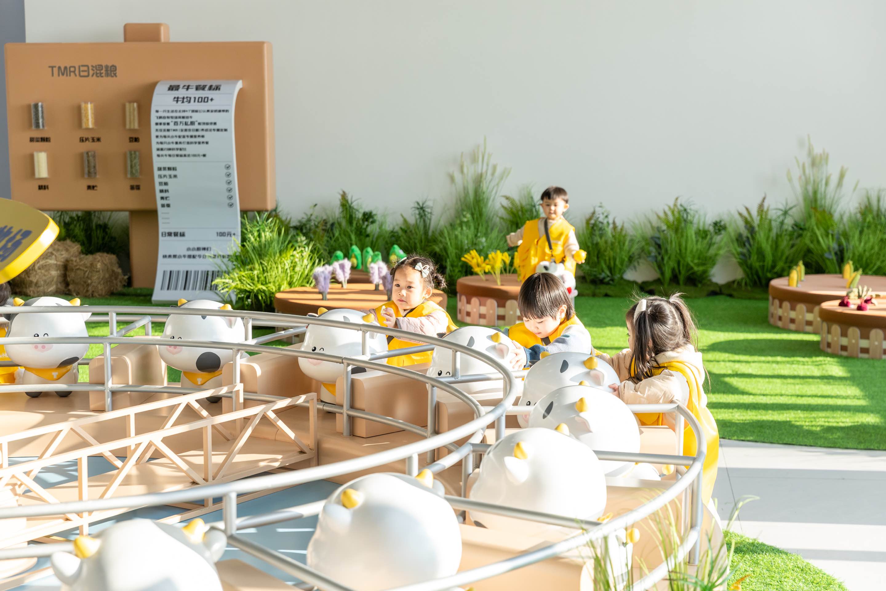 为了让小朋友们体验到工厂游的快乐,不仅安排了互动区域,还有更多的“原厂产”美食可供品尝。有用黑土地孕育出的北纬47°玉米做的冰淇淋,有用冻梨和飞鹤牧场牛乳做的“初生牛乳有冻梨”的拿铁,有融合了北方孩子快乐玄学的“黄桃美式奶盖”,也有又奶又萌的“冻柿子布丁”。