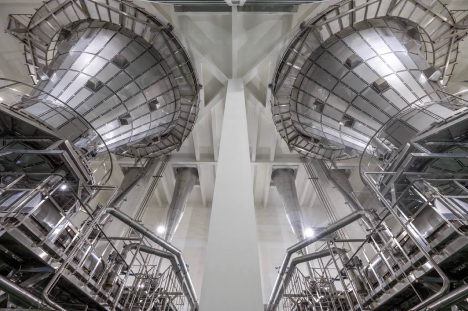 此外,游客还能在厂区看到约有6层楼高、只用1.2秒就能将被喷淋成雾状的牛奶干燥成粉的干燥塔;微观下探到对微量元素、微生物的检测的千眼系统;利用脉冲电场技术,能在数十秒内就测定出设备内表面微生物的细胞残留量和污垢残渣的“流式细胞术”;基本通过自动化的机械臂和AGV无人搬运车完成复杂的拣选、高约8层楼的中央物流中心,是一个完全自动化和智能化运营、高效协同的供应链……