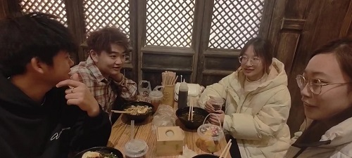 1月14日下午,实践队抵达唐山宴,这里汇聚了唐山当地的特色美食和民俗文化,是体验唐山地域风情的窗口。队员们在品尝美食的同时,也深入了解了唐山的饮食文化与市井生活,初步感受到了这座城市独特的文化魅力。
